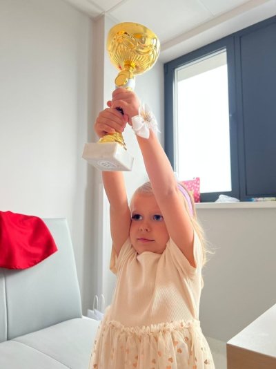 Tego dnia Bianka, niezwykła Onkobohaterka, zakończyła intensywną fazę leczenia. Z podniesioną głową i odważnym krokiem przeszła przez szpitalny korytarz, niosąc ze sobą siłę i nadzieję . Jej uśmiech był światłem dla innych dzieci, ich rodzin oraz personelu medycznego.