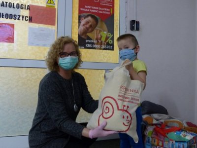 Ale Krwinka nigdy nie zostawia bez świątecznej pomocy tych, którymi opiekuje się na co dzień. - Zrobiliśmy wszystko, co w naszej mocy by sprawić, aby dzieci otrzymały świąteczne prezenty - mówi Elżbieta Budny, Prezes Zarządu Fundacji Krwinka. - Na oddziały onkologiczne mogą teraz wchodzić wyłącznie nasi psychologowie, Ewa i Jacek, którzy w imieniu całej Fundacji przekazali dzieciom wielkanocne baranki. To nie tylko zabawka, ale po złożeniu i zapięciu także wygodna poduszka!